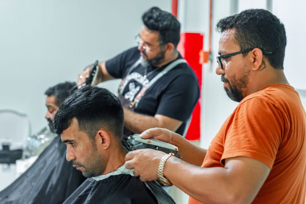 O cabeleireiro Mário Albuquerque e o barbeiro Gilvan Pontes foram voluntários na ação dos cortes de cabelo. “Muitos estão distantes da família, a autoestima já fica muito baixa. Esse tipo de ação faz com que eles elevem a autoestima”, disse Mário. Gilvan completou: “Eles chegam tímidos, mas saem com sorriso no rosto, com autoestima alta”.
