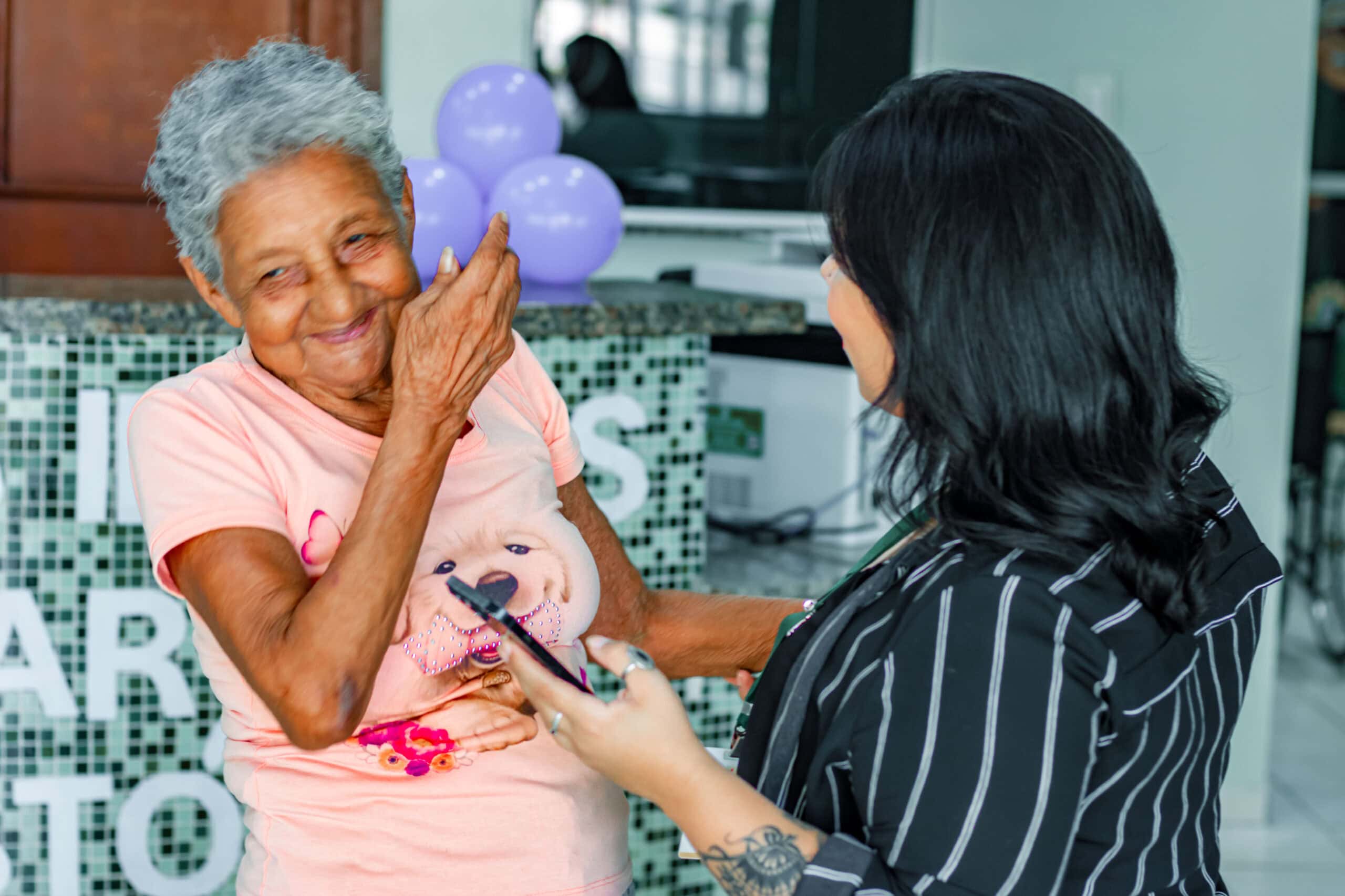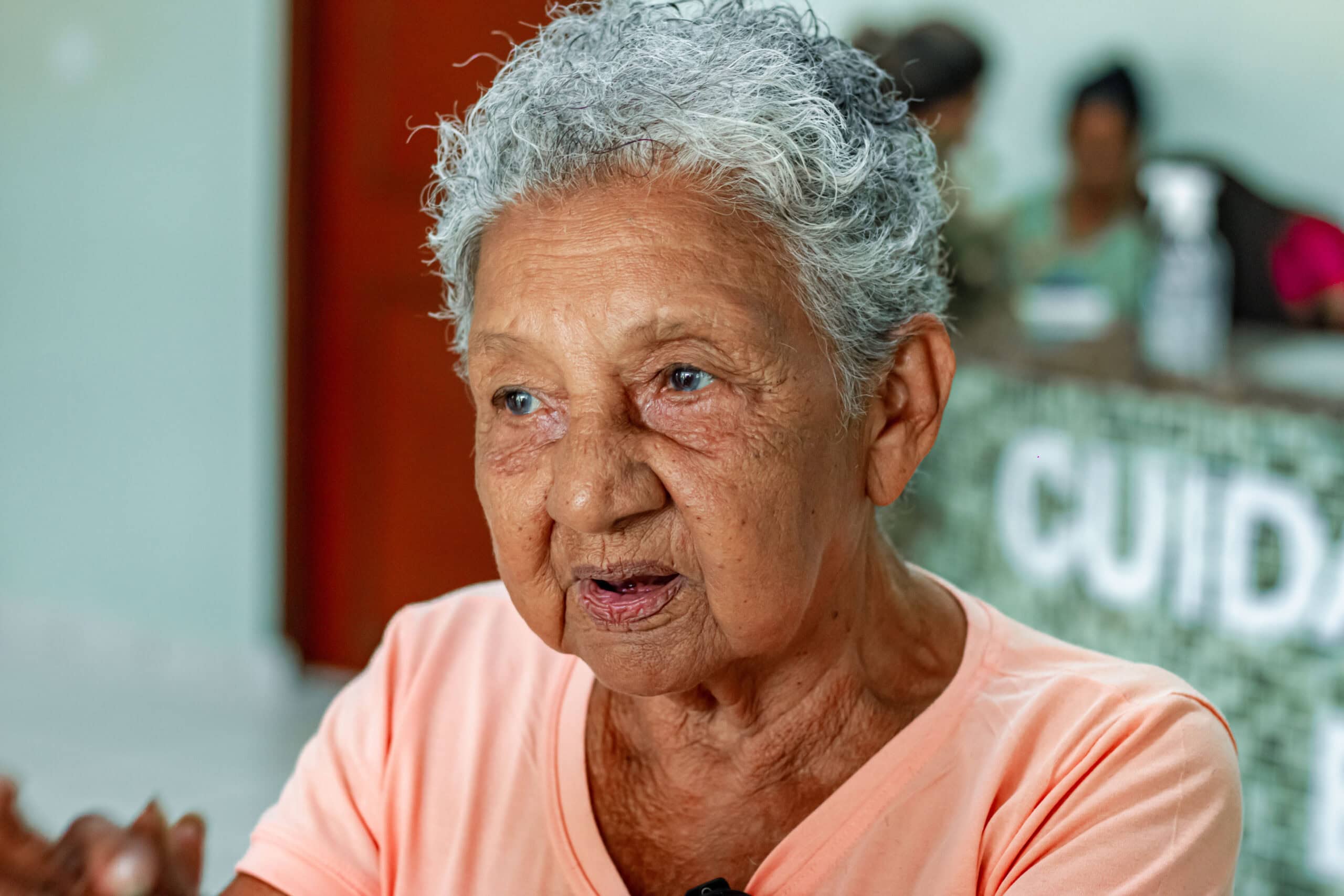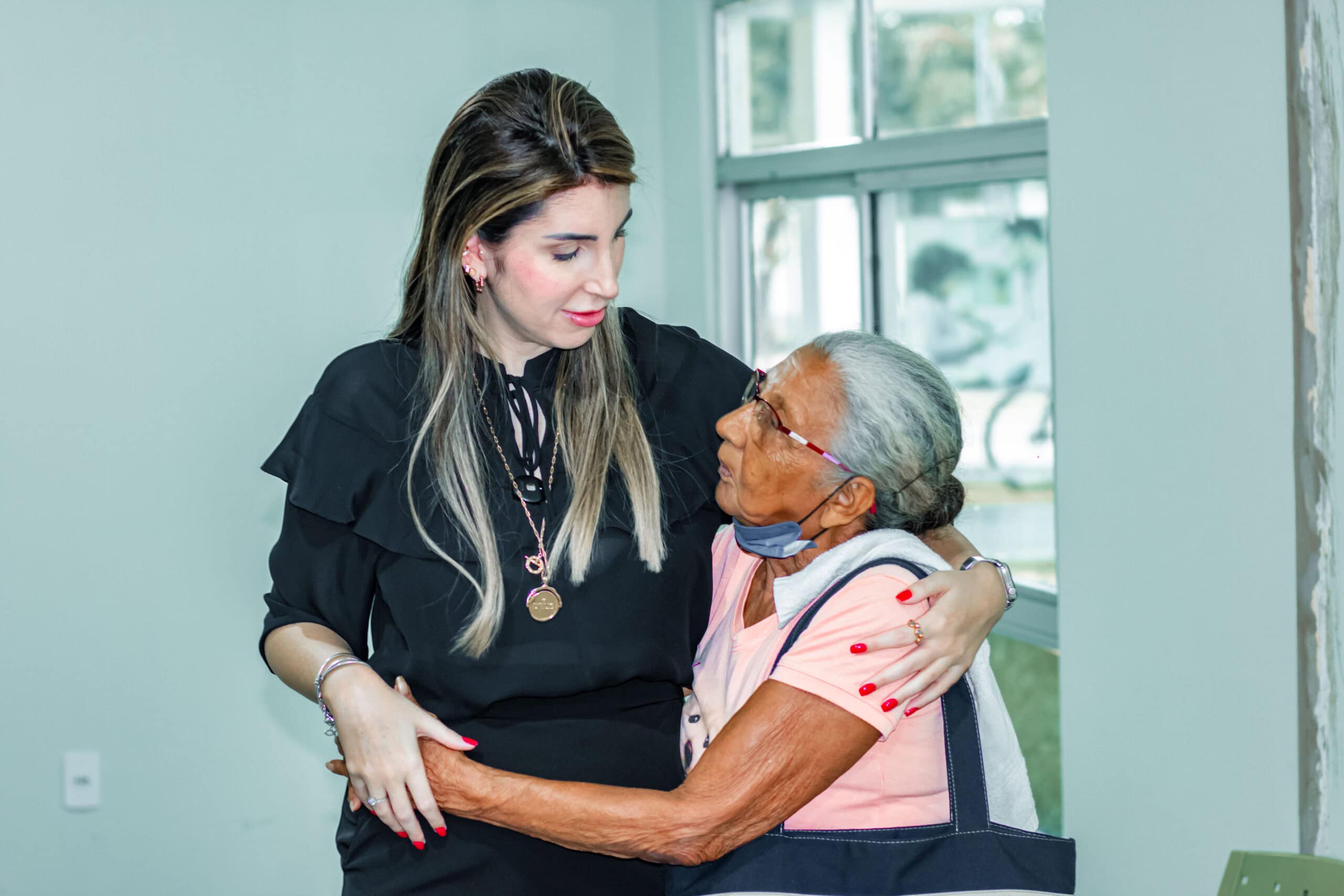 Francisca da Silva, de 83 anos, passou pela cadeira dos profissionais após anos sem cortar o cabelo, já grisalho. Ela não conteve as lágrimas quando se viu no espelho. “É o dia mais feliz da minha vida. Apesar da saúde frágil, hoje eu estou muito orgulhosa porque o pessoal daqui trata a gente tão bem. Eu chego doente com a doutora [Milagros] e saio boazinha”.