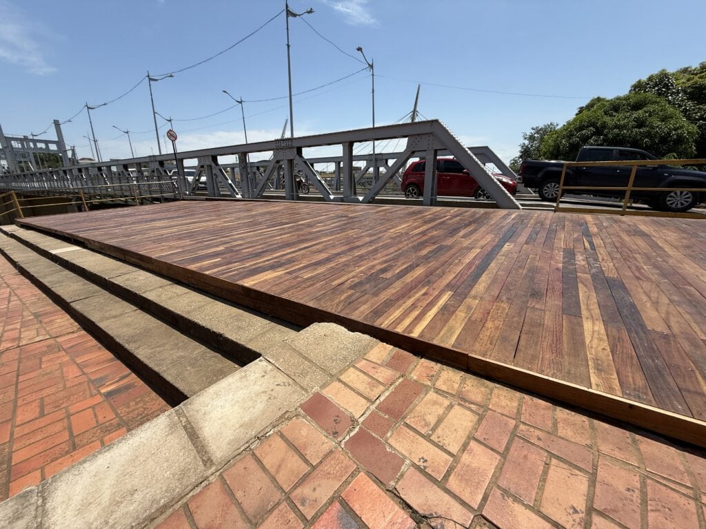 O governo do Acre, por meio da Secretaria de Estado de Obras Públicas (Seop), concluiu nesta sexta-feira, 3, os serviços de recuperação do deck de madeira da Ponte Juscelino Kubitschek, conhecida como Ponte Metálica, localizada no centro de Rio Branco.