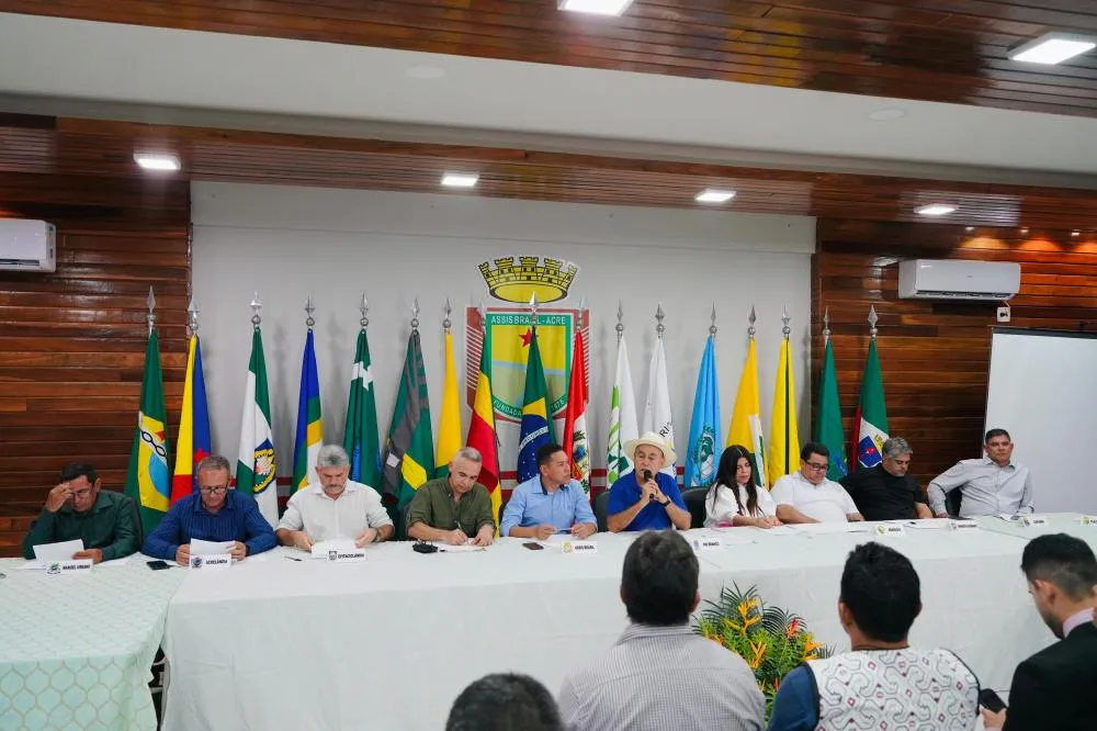 A reunião foi realizada no prédio anexo da Prefeitura Municipal e contou com a participação de prefeitos e vice-prefeitos dos municípios de Manoel Urbano, Bujari, Rio Branco, Senador Guiomard, Acrelândia, Plácido de Castro, Capixaba, Xapuri, Epitaciolândia, Brasileia e Assis Brasil.