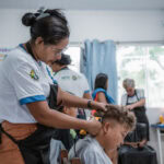 Moradores da comunidade próxima à Escola Bom Jesus, onde a atividade foi realizada, aproveitaram a oportunidade para renovar o visual de crianças, adolescentes e adultos. A moradora Railan Valente destacou a importância da iniciativa e expressou gratidão pela ação social.