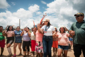 Recebida com cânticos e demonstrações de carinho, Mailza destacou a importância de levar políticas públicas e ações sociais às comunidades mais distantes. “Quero voltar aqui e conhecer também as outras aldeias. A gente sabe que a demanda é muito grande, tem o estado todo para cuidar, mas nós vamos fazer o esforço que for necessário para estar presente e para, além disso, trazer os benefícios. Nosso governo trabalha para garantir educação, saúde, alimentação e dignidade, preservando a cultura e o modo de vida de vocês. Não vamos medir esforços para atender bem a nossa população indígena”.