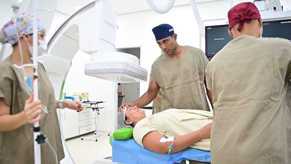 O médico cardiologista Pablo Saad foi o responsável pela condução do procedimento e explicou sobre a importância do diagnóstico e tratamento, uma vez que a arritmia cardíaca oferece alto risco de morte súbita. “Em todos os casos de arritmia, a gente envolve primeiro o diagnóstico, que a gente chama de estudo eletrofisiológico, que é estudar a parte elétrica do coração de onde nascem as arritmias. É um procedimento minimamente invasivo, não tem corte, não tem costura. A gente faz todo esse procedimento através de uma punção na veia e leva esse material dentro do coração. E esse material é capaz de diagnosticar onde está a arritmia, o foco, tudo. Fazemos o estudo eletrofisiológico e, aí, partimos para a segunda fase, que é feita no mesmo ato, que é a parte da ablação. Ablação já é a terapia, que é o tratamento, a gente cauteriza, que a gente chama de ablacionar o foco da arritmia pra eliminar aquele problema. Então, ela pode sair daqui da sala completamente curada, sem nenhum problema de saúde e sem risco futuro,” esclareceu.